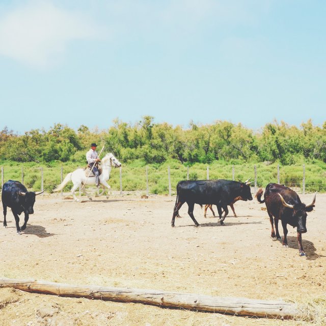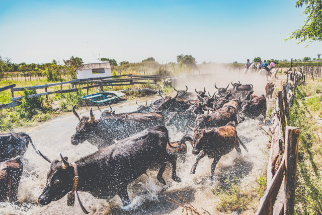 Climb aboard behind a pickup or a fitted out trailer, for an exotic trip, in the midst of a herd of bulls. Go out to meet the herdsmen, these cowboys of the Camargue who rear the powerful cattle. The majority of the Camargue bull herds offer the same programme to tourists, namely demonstration of bull sorting, mounting a horse, visiting their holdings and other activities… You can even extend your day by a typically Camargue meal with the following on the menu: tapenade, aïoli (garlic and olive oil) and the celebrated gardiane (stewed bull beef), all with gypsy music playing in the background. A genuine delight!
