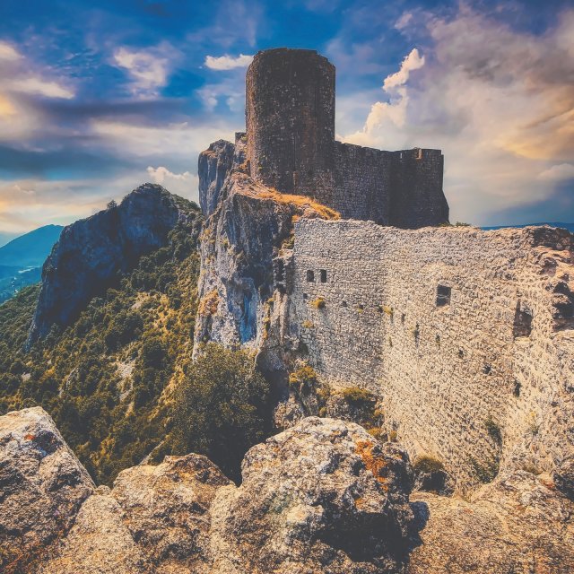 Apodadas las ciudades del vértigo debido a su emplazamiento en la ladera de la montaña, descubra los castillos más bellos del Languedoc. Comience su escapada medieval por el castillo de Quéribus. La subida a las murallas es un poco empinada, pero totalmente factible. No se olvide de tomar una audioguía, es la mejor manera de conocerlo todo sobre este majestuoso castillo cuya torre del homenaje mide 728 m. Enclavado en la cima de un espolón rocoso, ofrece a los turistas unas vistas espectaculares de la llanura del Rosellón.