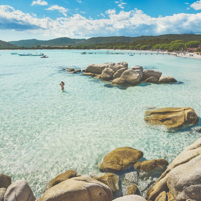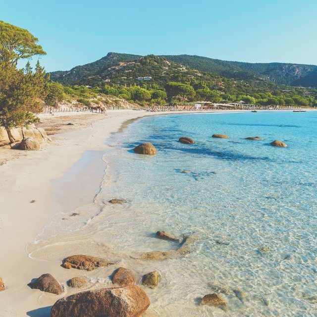 Een paradijselijk strand met fijn zand, duinen en rode rotsen. Palombaggia is zeker het mooiste strand in het zuiden van Corsica, met een kristalheldere zee en ongerept wit zand. Het wordt vooral gewaardeerd door gezinnen vanwege het ondiepe water, maar ook vanwege de omliggende dennen die de kinderen tegen de zon beschermen. Voor meer privacy raden wij u aan over de rotsen te klimmen die zich aan de uiteinden van het strand bevinden.