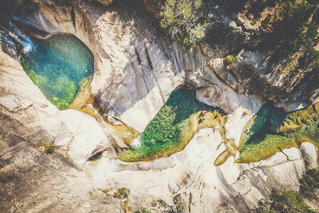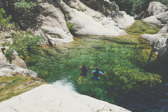 3 uur stroomafwaarts varen over één van de mooiste rivieren van Corsica, de Sulinzara. De Canyon de la Vacca is zeker de sportiefste en wildste van Bavella. U zult tijdens de tocht cursus veel sprongen van 2 tot 9 meter hoog maken, die niet verplicht zijn, en ook natuurlijke glijbanen tegenkomen die in de rots zijn uitgehouwen. Tijdens de vijftien meter lange abseilroute hebt u het gevoel door de lucht te vliegen. Het is een waar genoegen om meegevoerd te worden door de stroom van deze heldere rivier en in de soms diepe bekkens te baden.